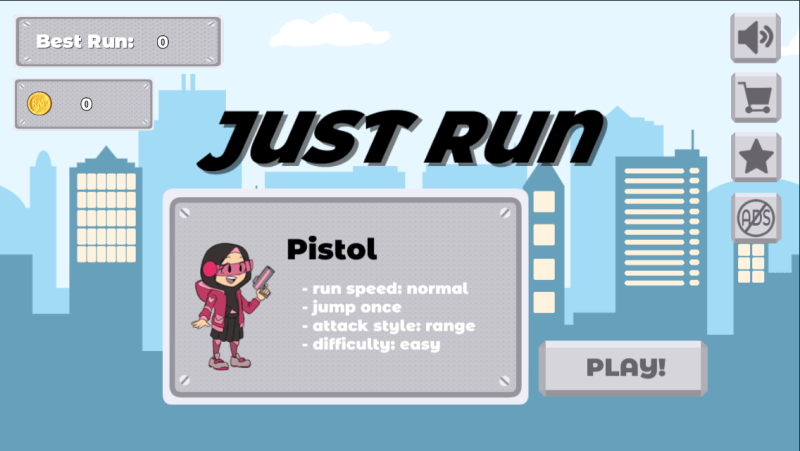 Just run is a small individual game assignment given by RaxBit as an early task upon joining the team to learn to build your own game using BuildBox. In this project, I have designed game assets which include characters, enemies, platforms and enemies. The game has 3 playable characters and consists of 5 levels with varying difficulties. The game will be available in Google Play Store for downloads.